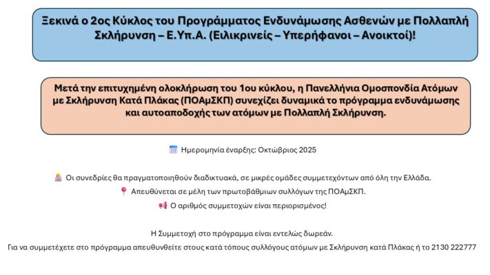 Ξεκινά ο 2ος Κύκλος του Προγράμματος Ενδυνάμωσης Ασθενών με Πολλαπλή Σκλήρυνση – Ε.Υπ.Α!