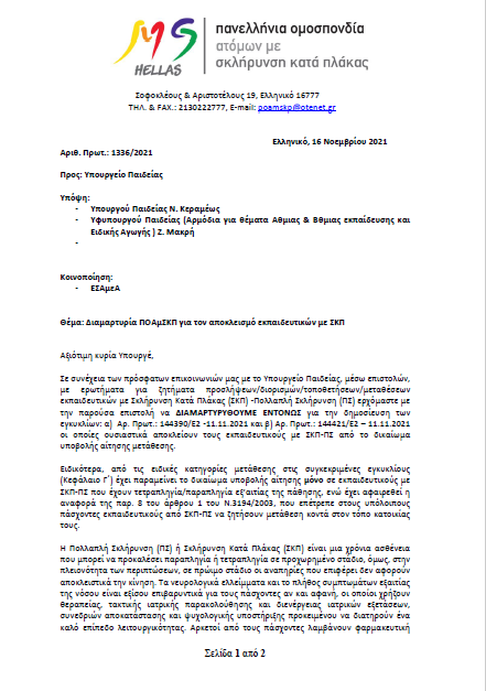 Η επιστολή σε μορφή pdf ΑΠ1336 Υπ. Παιδείας- ΔΙΑΜΑΡΤΥΡΙΑ ΓΙΑ ΤΟΝ ΑΠΟΚΛΕΙΣΜΟ ΕΚΠΑΙΔΕΥΤΙΚΩΝ ΜΕ ΣΚΠ s