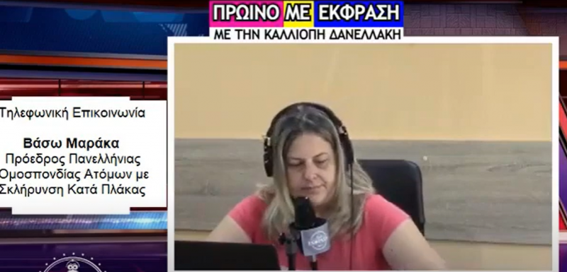 Η Πρόεδρος της Πανελλήνιας Ομοσπονδίας Ατόμων με Σκλήρυνση κατά Πλάκας κ. Βάσω Μαράκα μίλησε σήμερα [...]