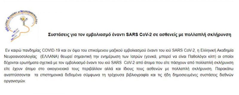 Συστάσεις για τον εμβολιασμό Ατόμων με Πολλαπλή Σκλήρυνση κατά του SARS-CoV-2 Πηγή: Ελληνική Ακαδημία Νευροανοσολογίας [...]