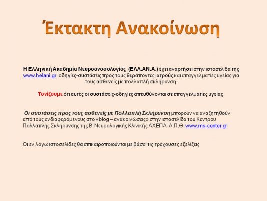 Έκτακτη Ανακοίνωση 17.03.2020 Η Ελληνική Ακαδημία Νευροανοσολογίας (ΕΛΛ.ΑΝ.Α.) έχει αναρτήσει στην ιστοσελίδα της www.helani.gr οδηγίες-συστάσεις [...]