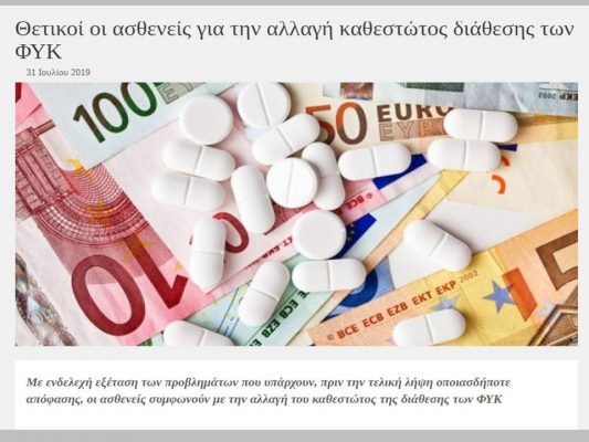 Θετικοί οι ασθενείς για την αλλαγή καθεστώτος διάθεσης των ΦΥΚ (Άρθρο που δημοσιεύθηκε στις 31 [...]